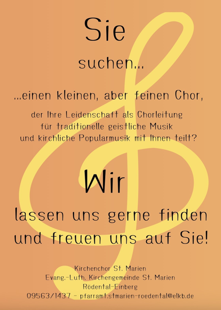 Die Proben finden montags um 19.30 Uhr im Gemeindehaus St. Marien statt.